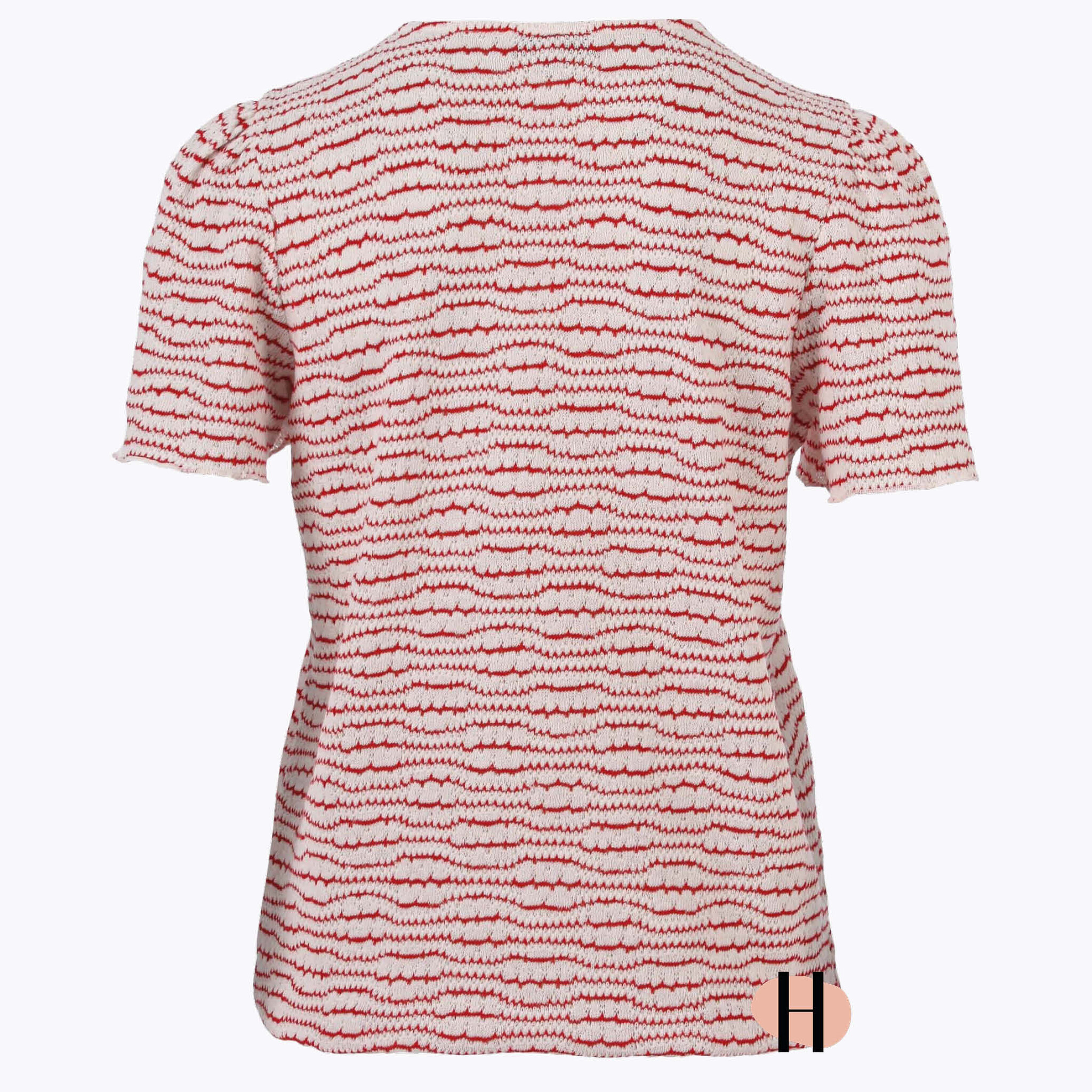 Fijngebreide Blouson met Strepen in Rood-Wit